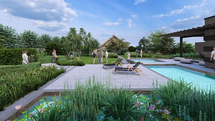 Великий газон працює як відкрита сцена — місце для подій, свят і живого спілкування. Природні квітники у поєднанні зі стриженими живоплотами створюють баланс між дикістю та порядком, а зелені «кімнати», сформовані живими огорожами, дають відчуття усамітнення й тиші навіть у відкритому просторі.