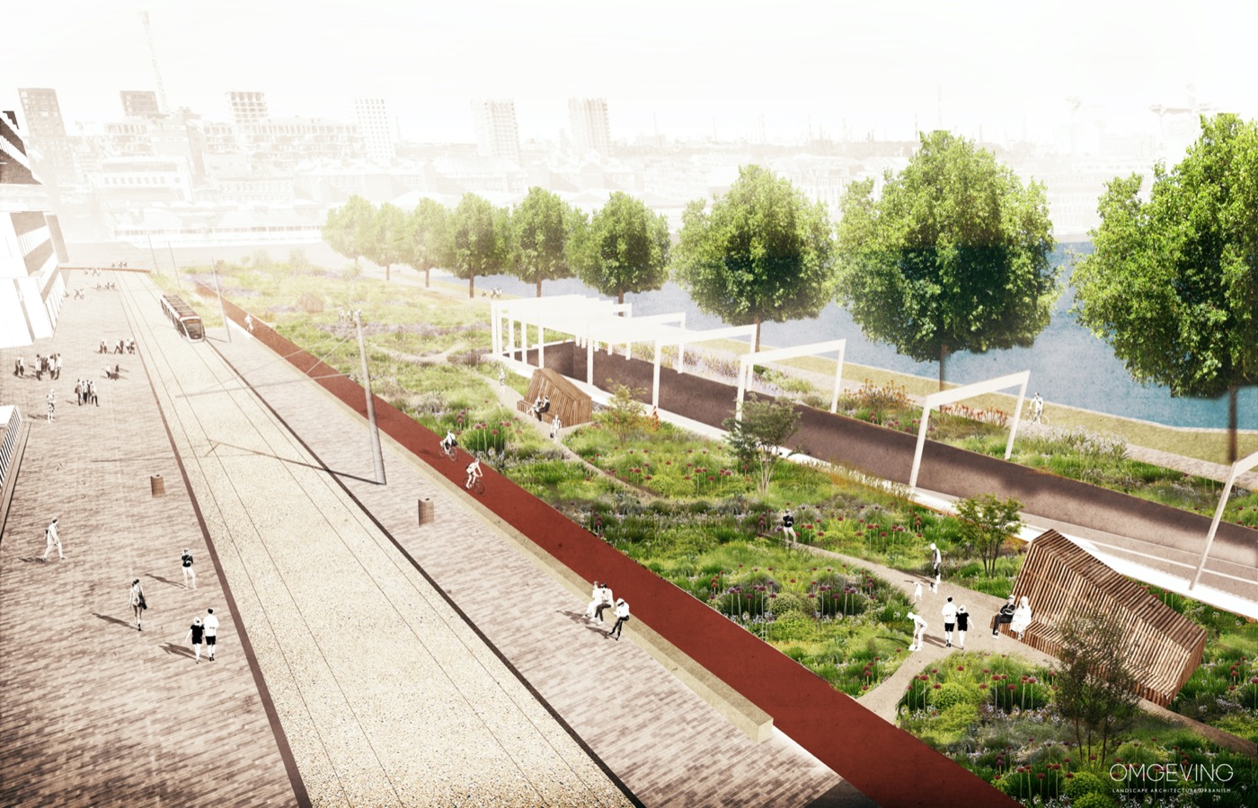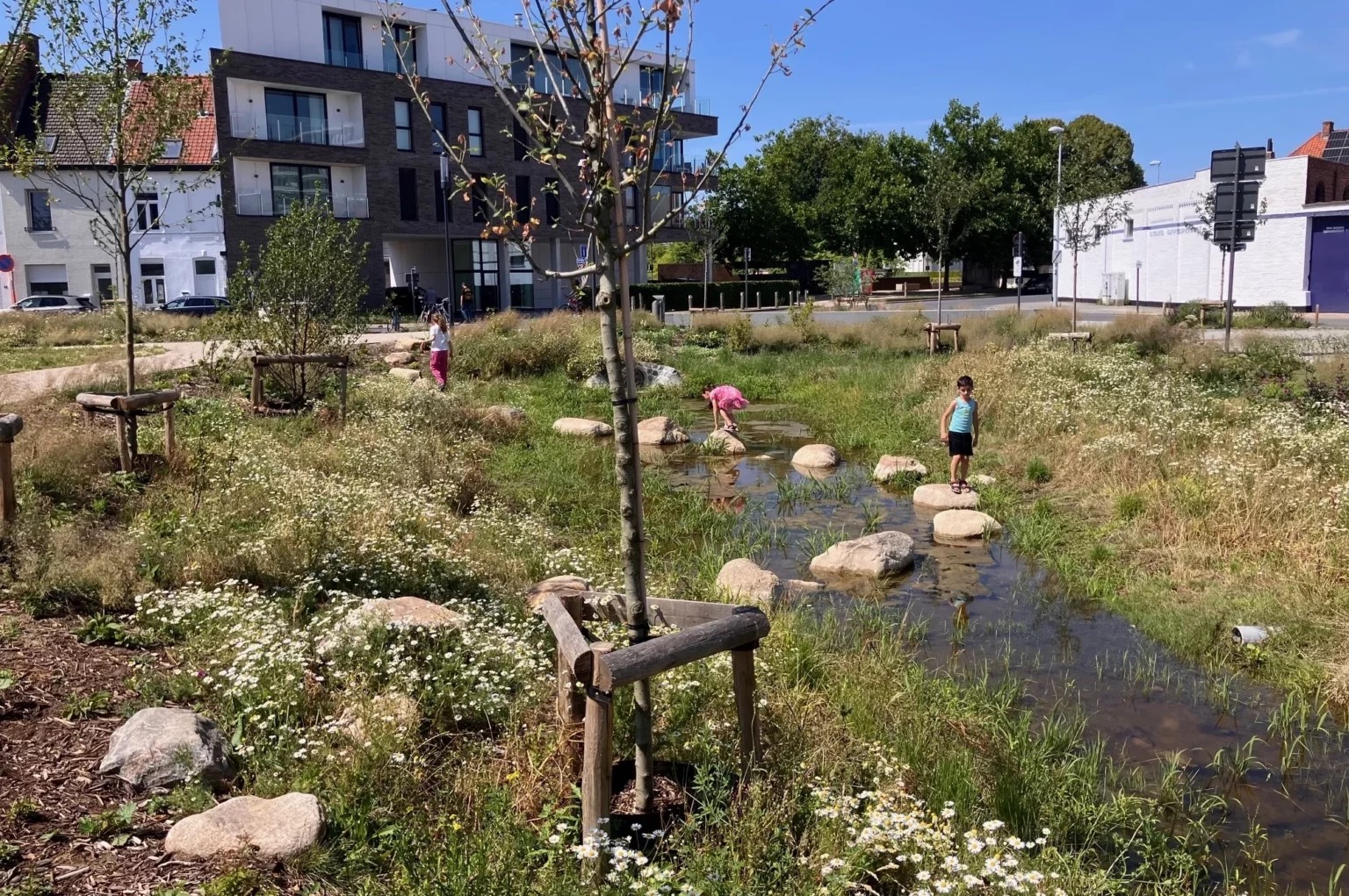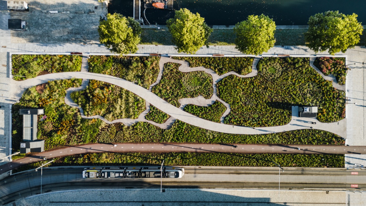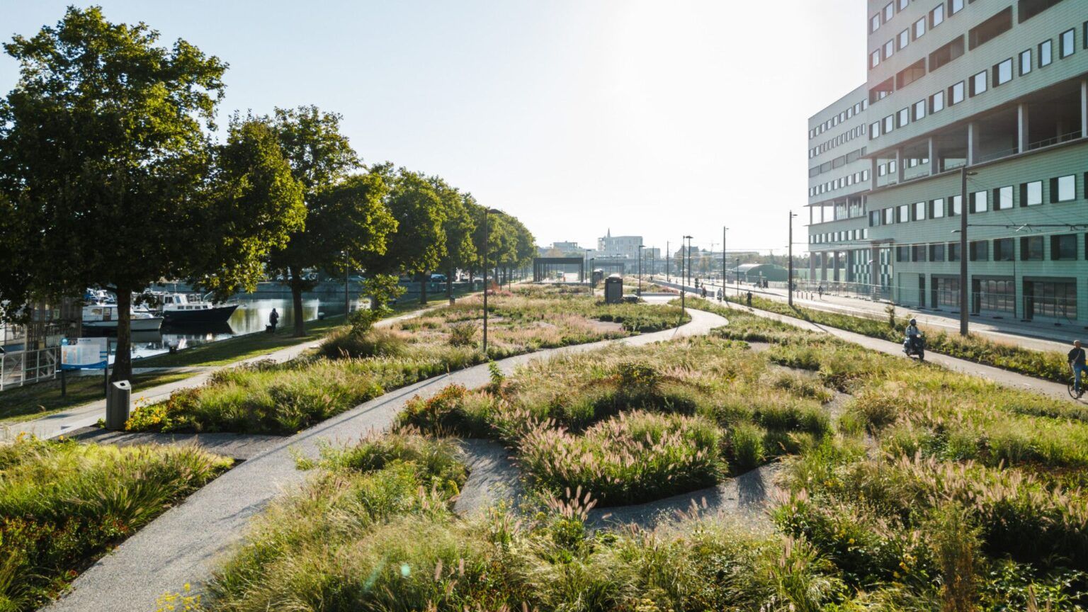 Цей парк був створений на місці колишнього паркінгу та став першим прикладом комплексного “зелено‐блакитного” рішення, яке поєднує природу, соціальну функцію та міську інфраструктуру.