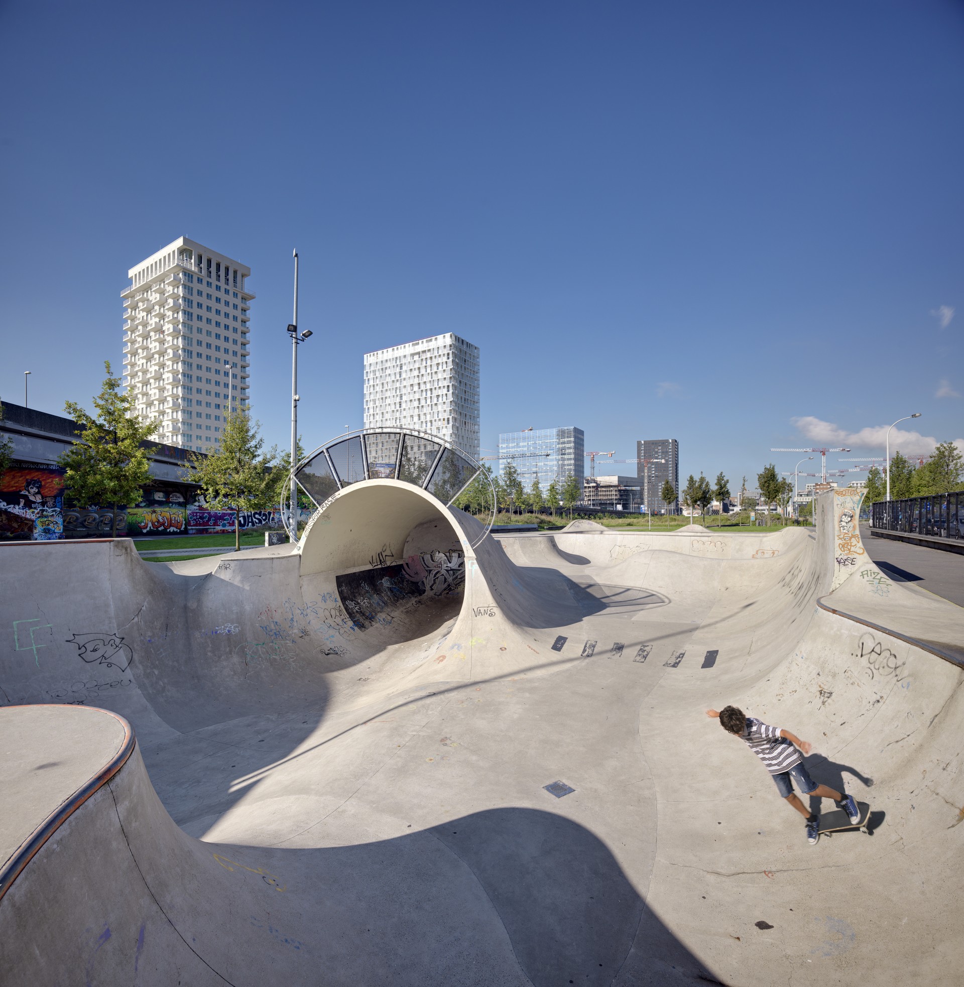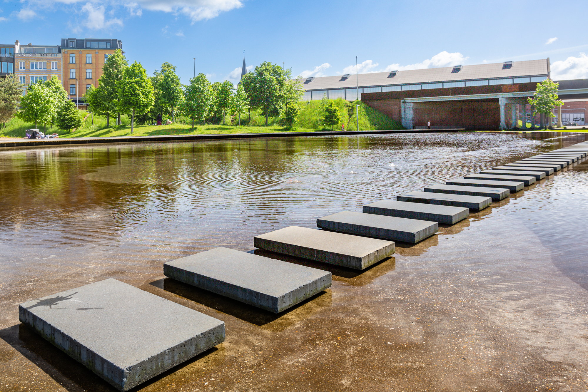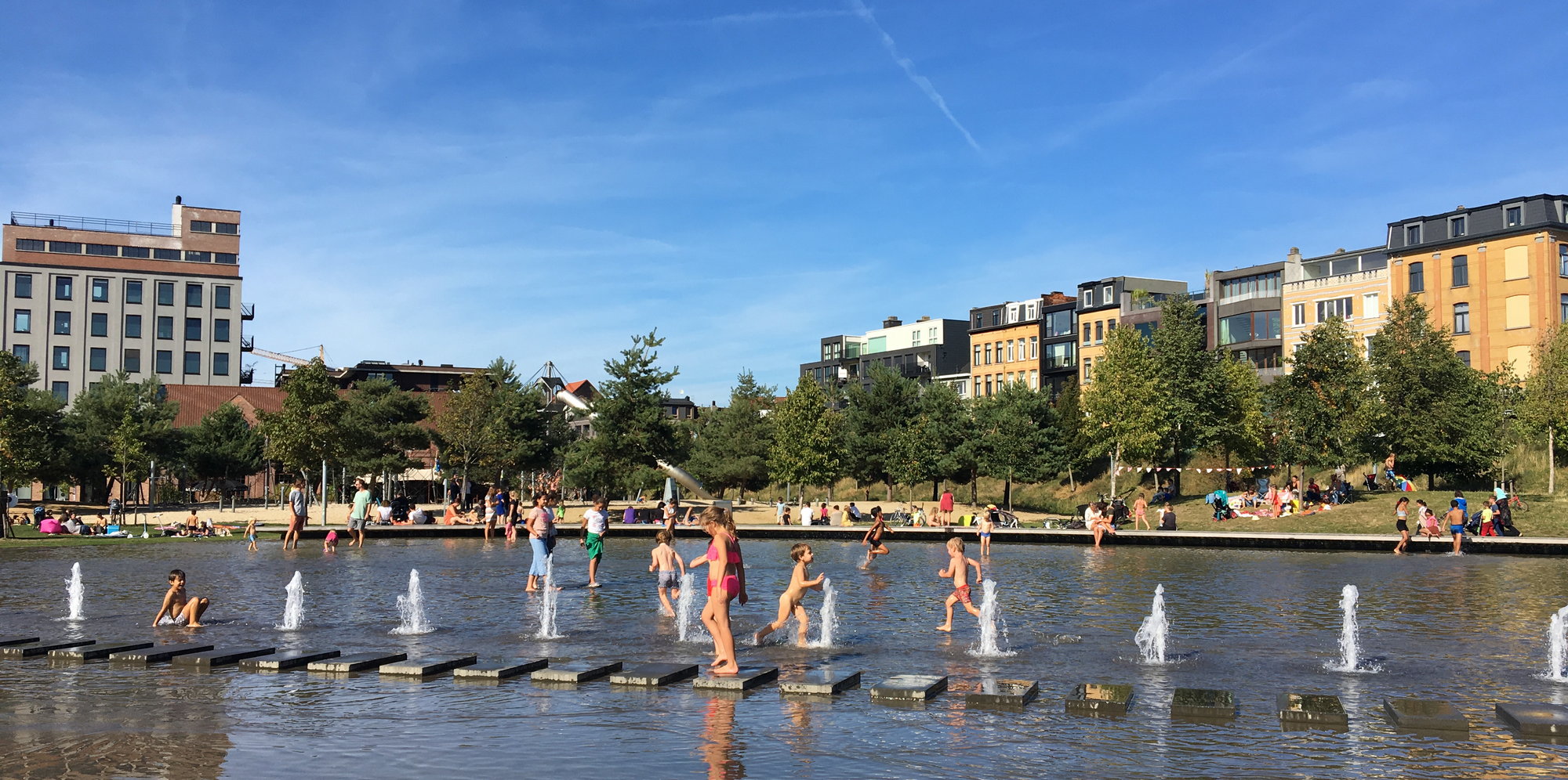 Цей парк був створений на місці колишнього паркінгу та став першим прикладом комплексного “зелено‐блакитного” рішення, яке поєднує природу, соціальну функцію та міську інфраструктуру.