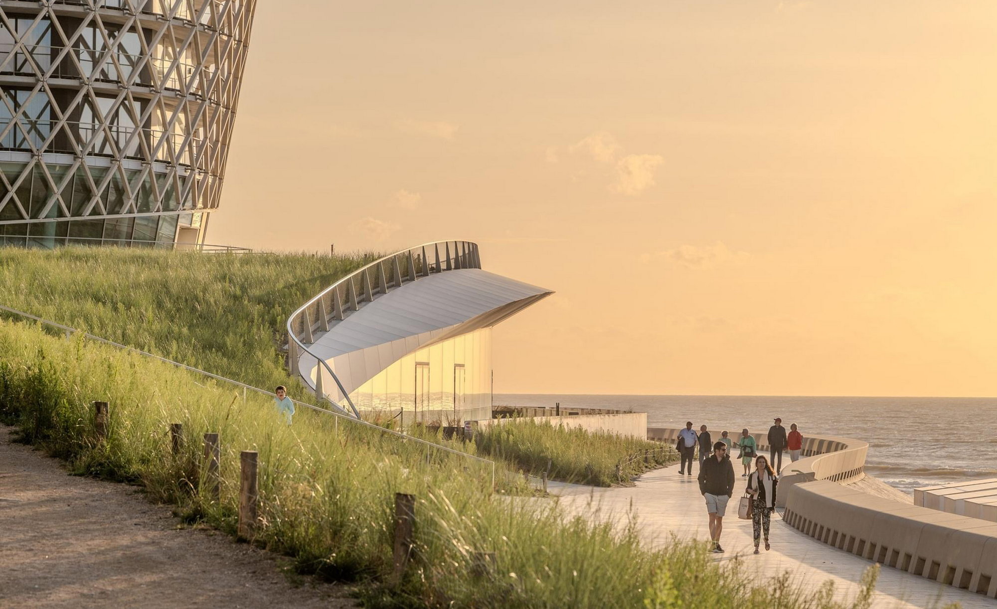 Проєкт натхненний зниклим островом Тестереп і відтворює природний характер узбережжя через піщані форми, прибережні трави та панорамні маршрути. У дюноподібну структуру інтегровані публічні простори, а сама споруда виконує функцію захисту від штормів.
