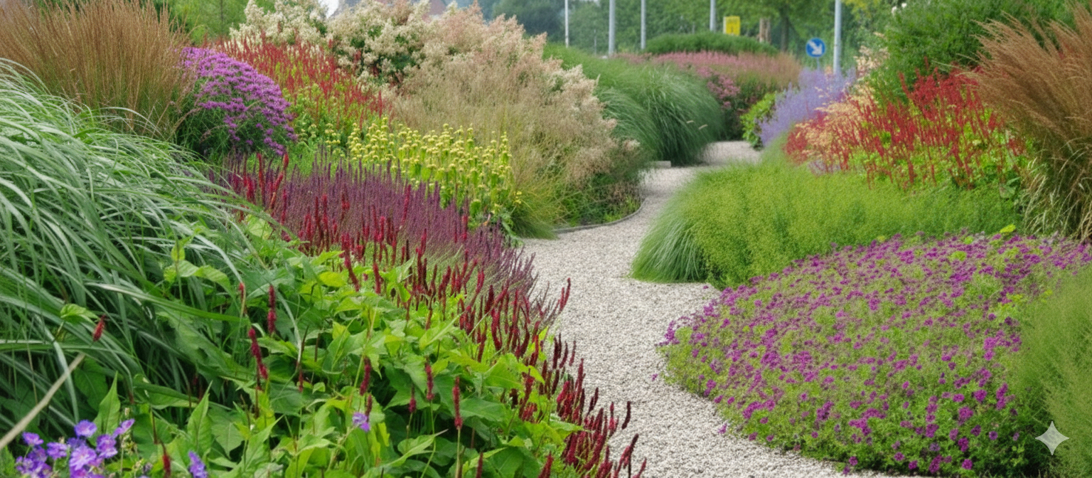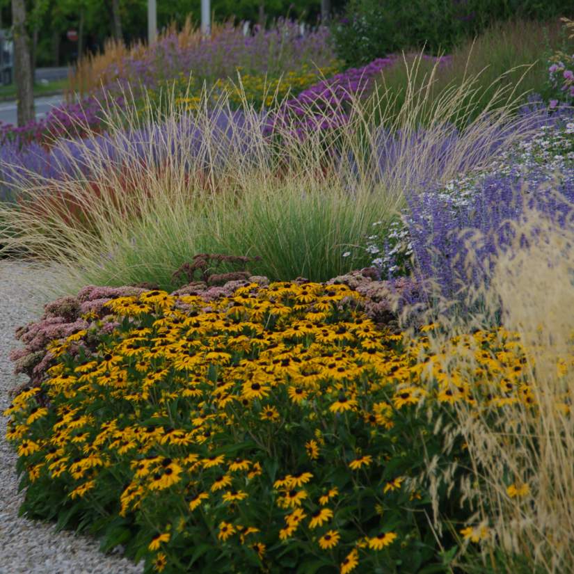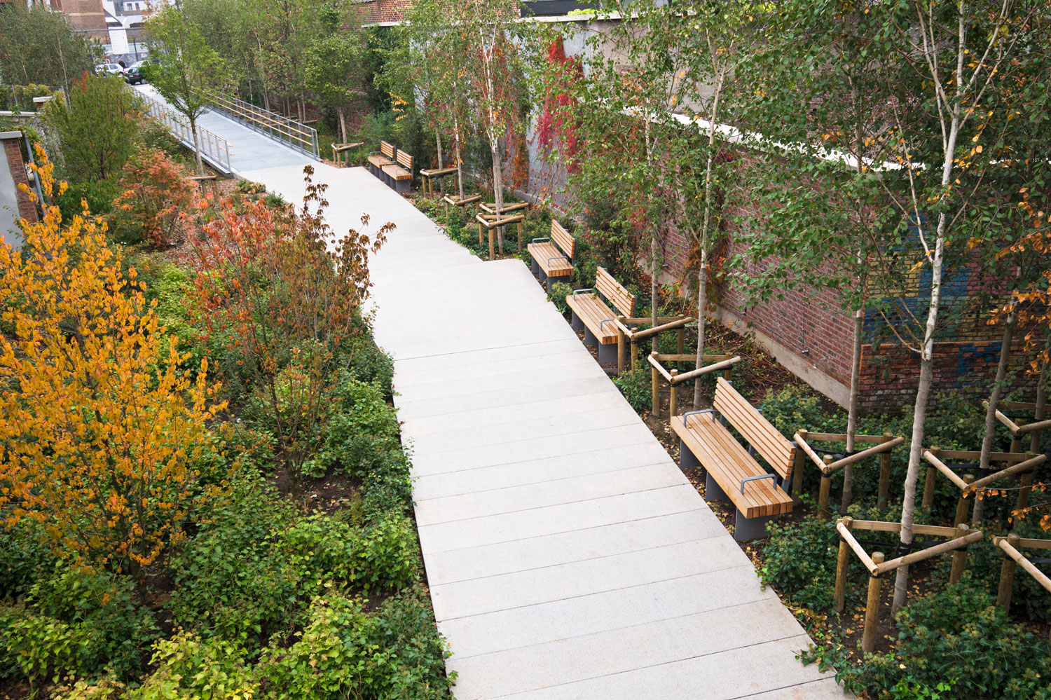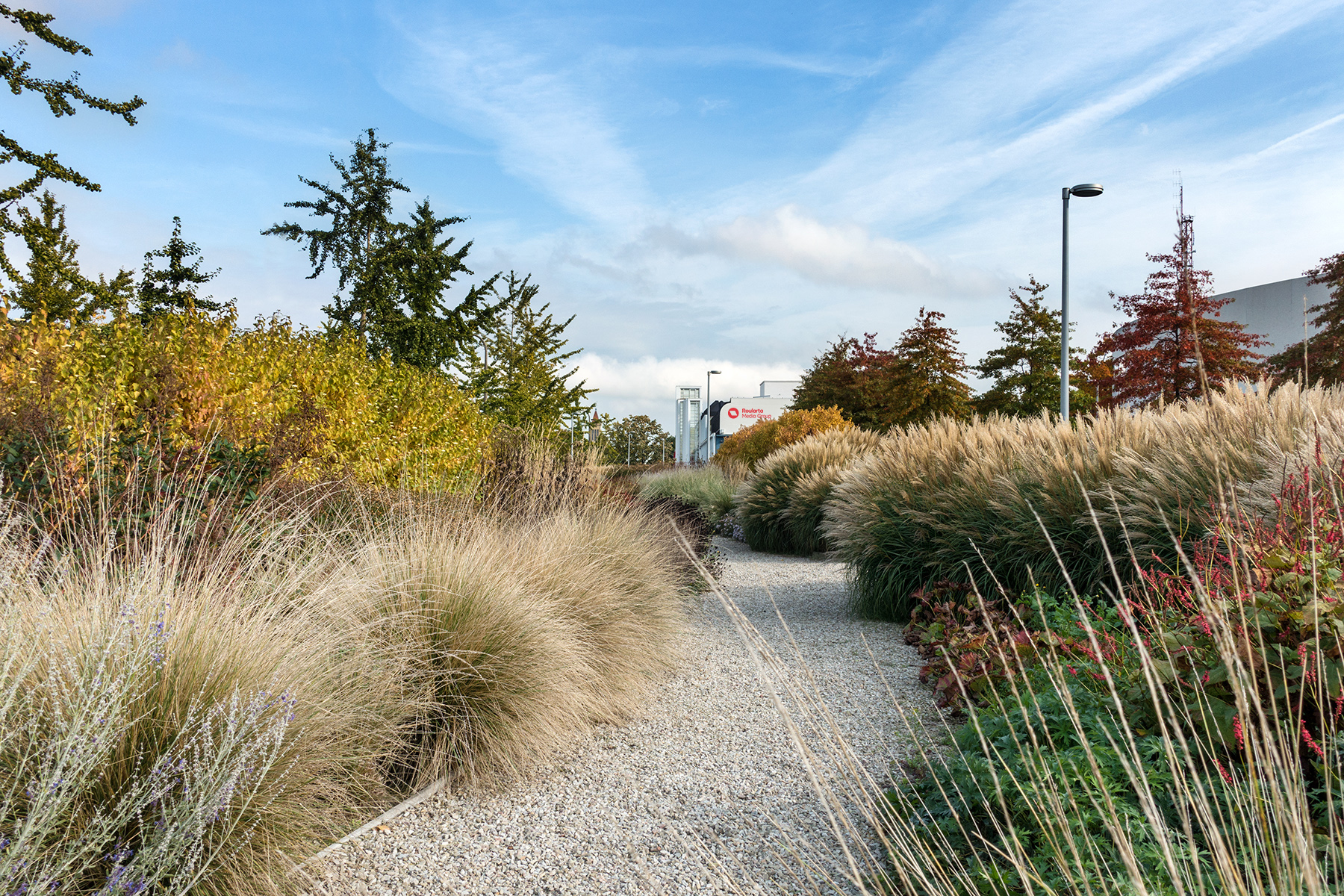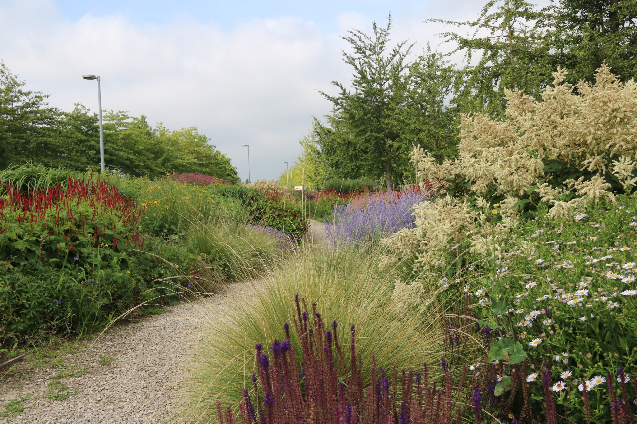 Відома студія спроектувала цей простір та висадила майже 38 000 багаторічних рослин і 37 000 цибулинних квітів, що забезпечує сильну сезонну зміну кольорів і текстур та підтримує високу біорізноманітність.
