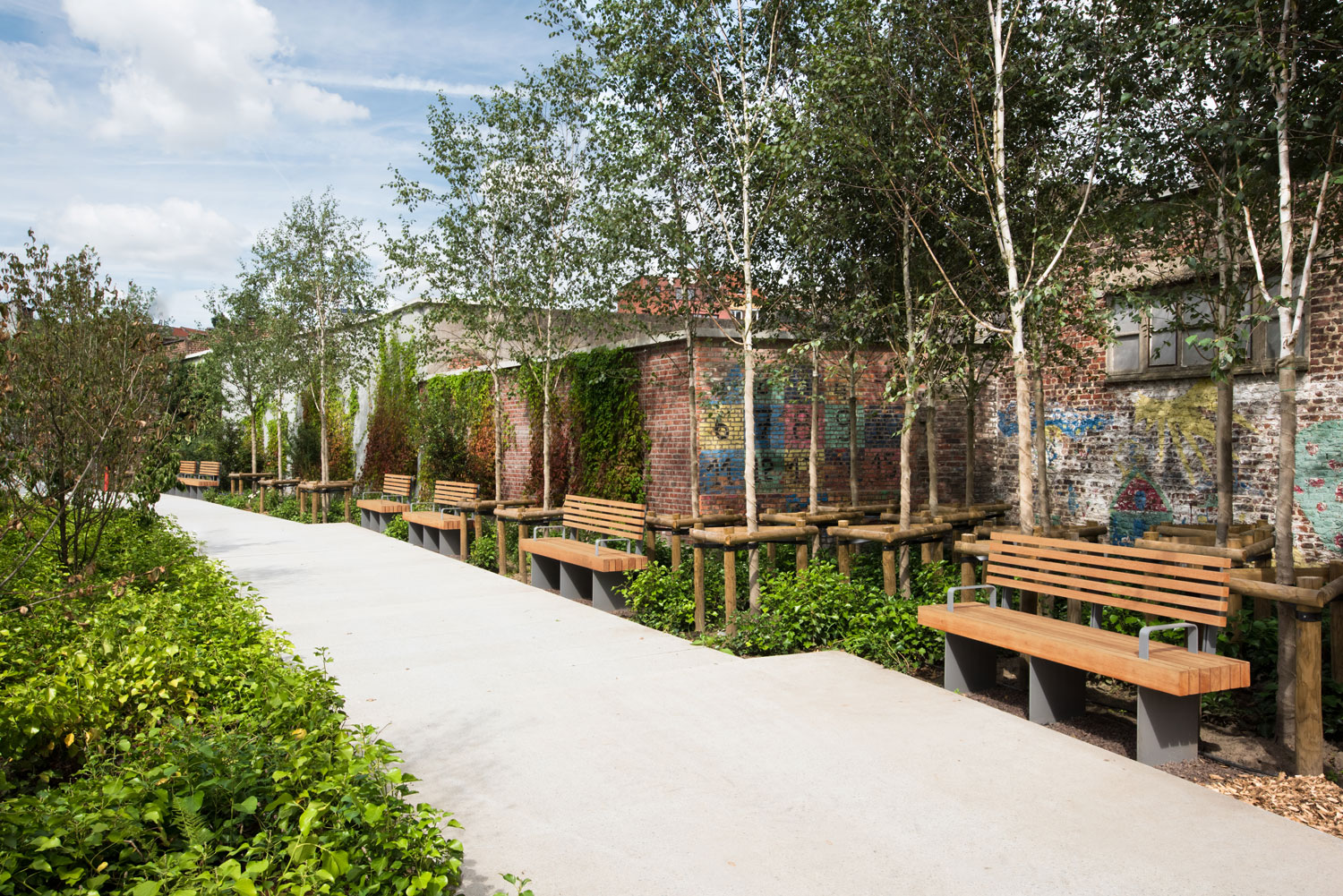 Його розробили ландшафтний дизайнер Кріс Гіселен у співпраці з художником Henry Claeys. Квітник спроектований як «living experiment»: тут ростуть власні селекційні сорти дизайнера, а декоративні трави і кущі, що створюють спокій і гармонію серед промислового середовища.