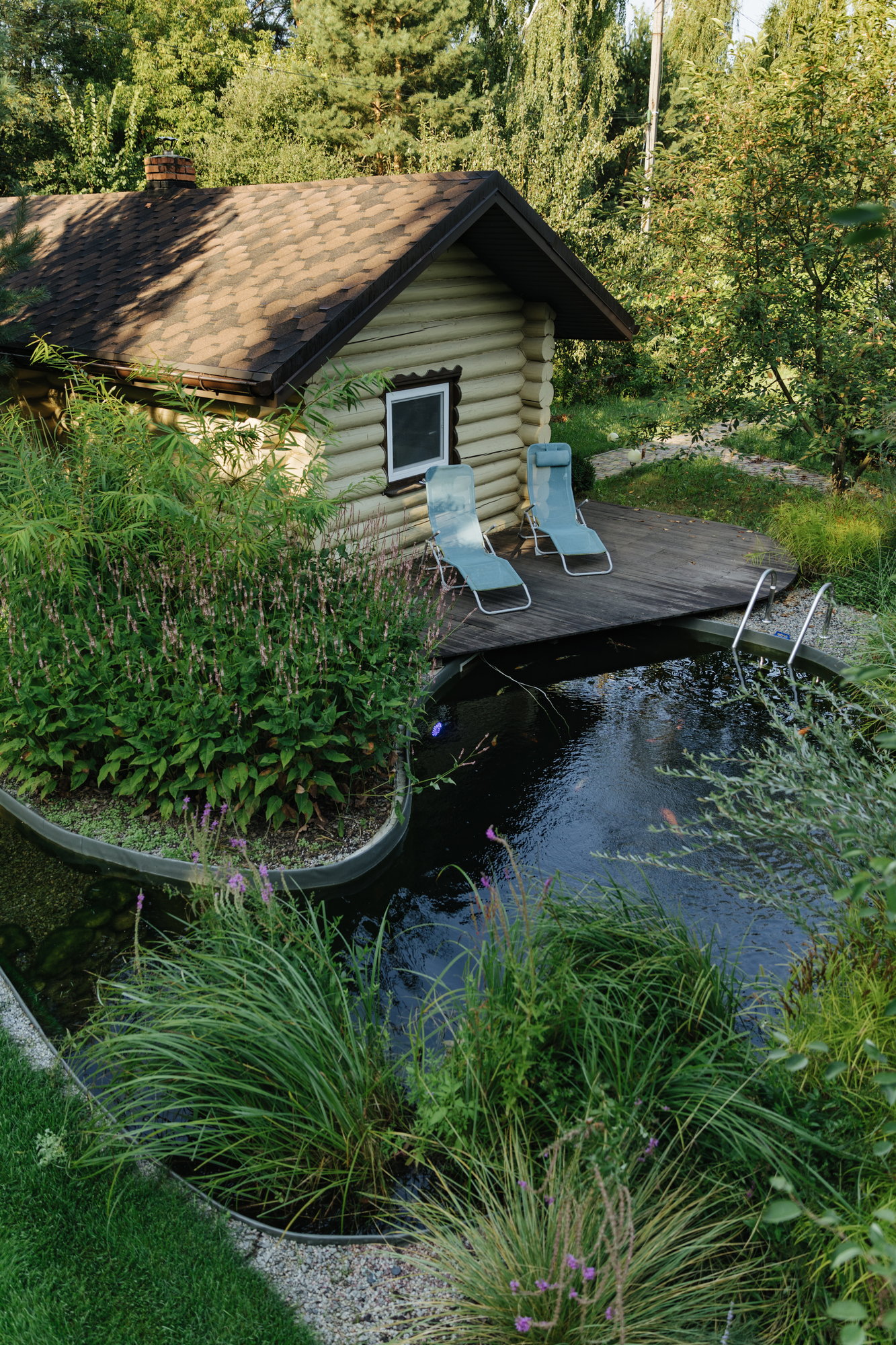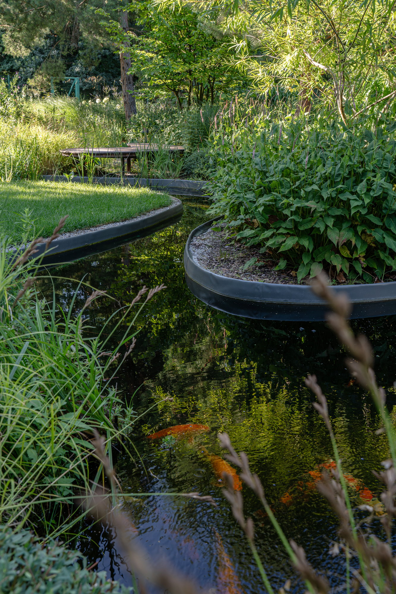 Центральна частина саду, де головним героєм є вода. Це місце сили, що розташоване між будинком та лазнею, густі посадки навколо води працюють як природна ширма, розмежовують простір, створюючи відчуття захищеності, але залишаючи сад частиною навколишнього дикого лісу.