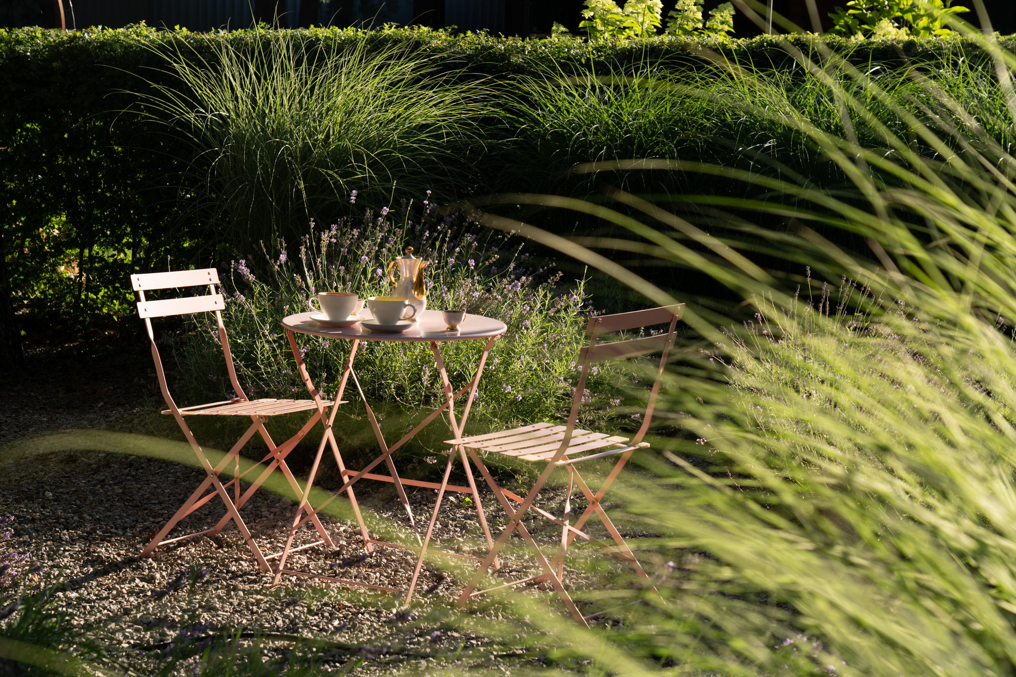 Завдяки високому живоплоту з глоду, тут виникає відчуття ніби час зупиняється для тихої розмови.